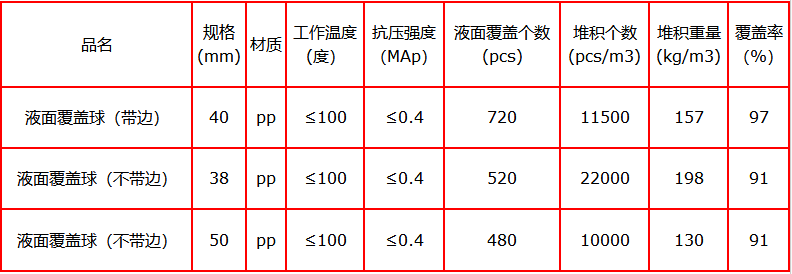 1.液面覆蓋球以聚丙烯pp為原料,經(jīng)發(fā)泡、收縮生產(chǎn)的圓形塑料填料,分帶邊液面覆蓋球與不帶邊液面覆蓋球兩種型號(hào),帶邊液面覆蓋球具有重心穩(wěn)定,邊與邊重疊,覆蓋效果好等特點(diǎn),其作用是抑制酸霧揮發(fā),保護(hù)操作人員健康,減少大氣污染和空氣對(duì)水質(zhì)的污染,有效提高凝結(jié)水質(zhì)量,有利于發(fā)電機(jī)組、供熱機(jī)組的安全運(yùn)行。液面覆蓋球經(jīng)過大量科學(xué)實(shí)驗(yàn),它有效地解決了液面覆蓋技術(shù)難題,可保護(hù)水質(zhì)、凈化環(huán)境、安全防火、節(jié)約能源。產(chǎn)品特點(diǎn) 1.設(shè)計(jì)精巧合理,外形美觀。選材得當(dāng),耐酸耐壓(耐壓0.4MPa,耐酸度為35%濃鹽酸,工作溫度≤100℃)